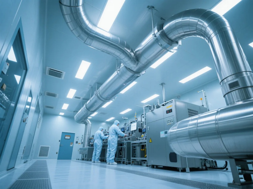 圍護系統(tǒng):采用50mm厚金屬夾芯彩鋼板墻體,表面覆有抗靜電涂層,接縫處采用圓弧過渡設(shè)計,避免積塵。天花板采用FFU(風(fēng)機過濾單元)滿布布局,配合高效HEPA過濾器,確保垂直層流氣流組織,潔凈度穩(wěn)定控制在≤1,000顆粒/立方米(≥0.5μm)。
