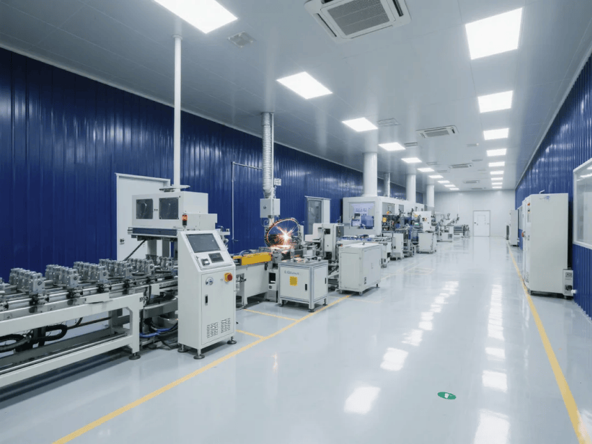 車間采用模塊化潔凈室結(jié)構(gòu),墻體采用50mm厚深藍抗菌彩鋼板,接縫處采用圓弧處理工藝。自動化沖壓線與激光焊接工作站呈U型交替布局,工作站間設(shè)置深灰不銹鋼傳遞窗,確保物料流轉(zhuǎn)潔凈度。吊頂系統(tǒng)配置FFU高效過濾單元,維持≥20次/h換氣次數(shù),氣流組織采用頂送側(cè)回模式。