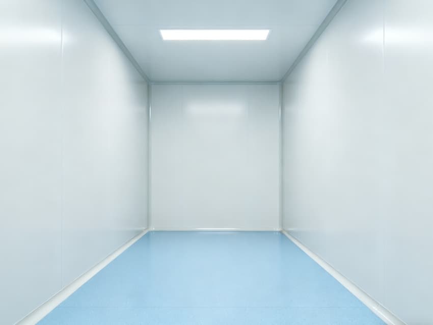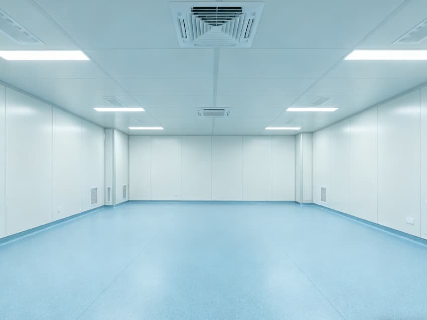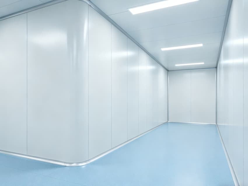 內(nèi)部按功能劃分為六大潔凈區(qū)域:核心潔凈生產(chǎn)區(qū)(淺藍(lán)色防滑防霉地面)預(yù)留開闊空間,滿足發(fā)酵罐、純化設(shè)備等后期安裝;頂部潔凈送風(fēng)區(qū)通過規(guī)整風(fēng)閥系統(tǒng),實現(xiàn)萬級潔凈度均勻送風(fēng);墻面過渡區(qū)采用圓弧轉(zhuǎn)角設(shè)計,避免粉塵堆積;密閉觀察區(qū)設(shè)雙層鋼化觀察窗,兼顧生產(chǎn)監(jiān)控與無菌隔離;縱向設(shè)備預(yù)留區(qū)保留8米凈高,適配大型凍干設(shè)備動線;輔助緩沖區(qū)銜接車間入口,搭配風(fēng)淋系統(tǒng),實現(xiàn)人員/物料潔凈過渡。整體空曠布局既保障潔凈操作空間,又滿足皖北生物制藥企業(yè)靈活擴產(chǎn)需求,為本地藥企提供合規(guī)、高效的生產(chǎn)載體。