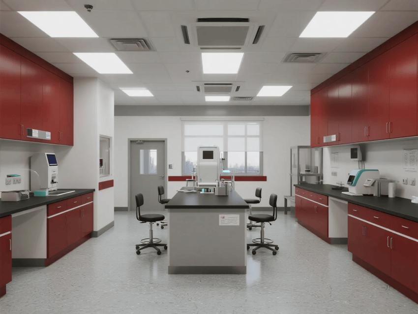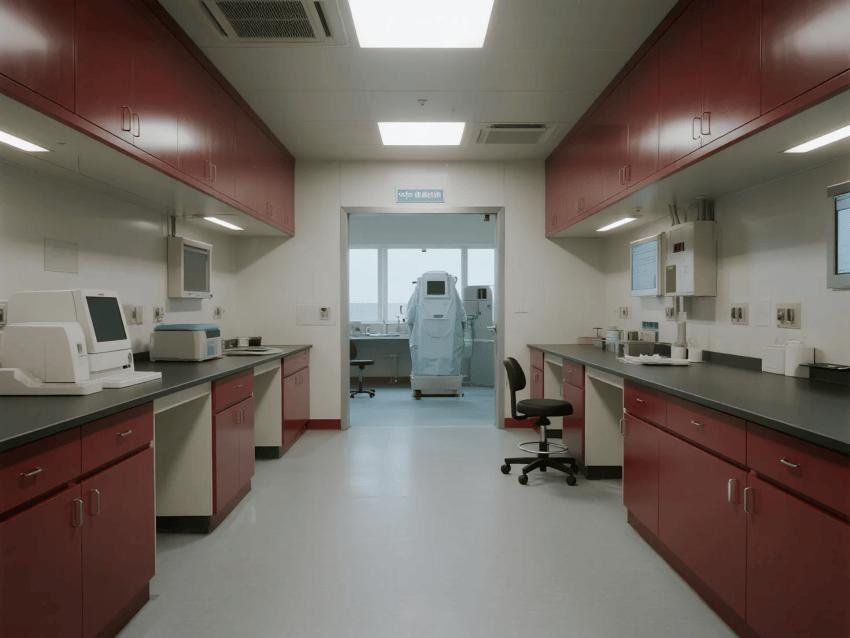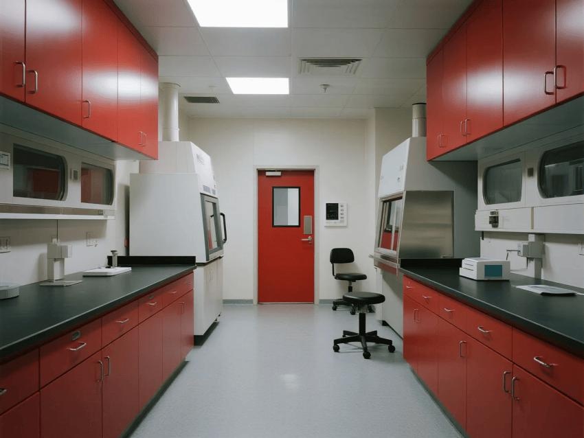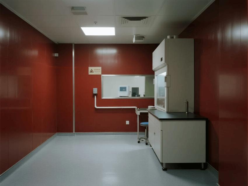 本實驗室嚴格遵循BSL-3級生物安全標準,通過深紅彩鋼板與淺灰環(huán)氧地坪的強烈視覺對比,構建安全高效的病原體研究空間。