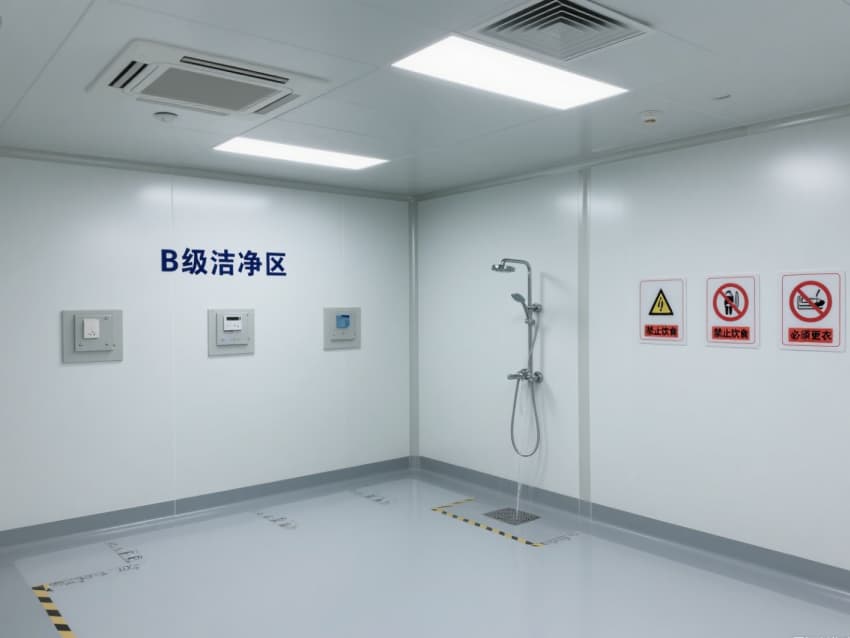 車間嚴(yán)格遵循萬級(jí)潔凈標(biāo)準(zhǔn),每立方米空氣中≥0.5μm微粒數(shù)≤35.2萬個(gè)、菌落數(shù)≤10個(gè)。白色抗菌彩鋼板搭建的墻體與吊頂,具備抗菌、耐腐蝕、易消毒特性,墻面與地面的圓弧過渡設(shè)計(jì)徹底消除衛(wèi)生死角;淺灰防靜電環(huán)氧地坪則通過防靜電處理,避免靜電干擾生物活性物質(zhì)。?