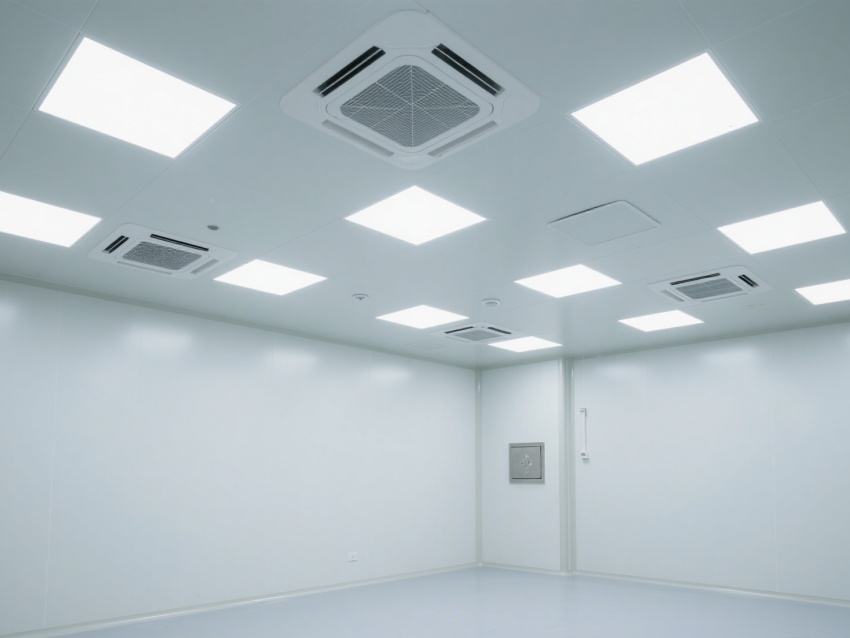 該車間完全符合電子行業(yè)十萬級(jí)潔凈標(biāo)準(zhǔn),適用于半導(dǎo)體封裝、電子元器件組裝等場(chǎng)景,無設(shè)備的通透空間可靈活適配各類電子生產(chǎn)設(shè)備布局,從空間設(shè)計(jì)層面保障電子產(chǎn)品生產(chǎn)過程的無塵、防靜電需求,降低產(chǎn)品不良率。
