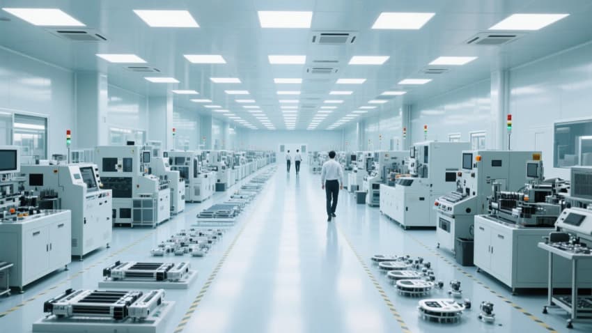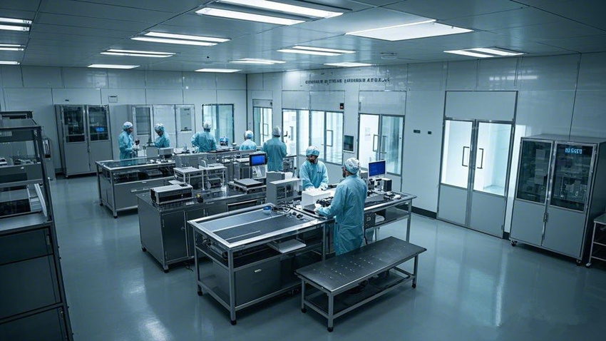 1000平方米的電子無塵車間,宛如一座現(xiàn)代科技的圣殿,以其無與倫比的潔凈與井然有序,彰顯出對(duì)高科技產(chǎn)品生產(chǎn)的極致追求。空間內(nèi),每一寸都透露著現(xiàn)代科技風(fēng)格的冷峻與