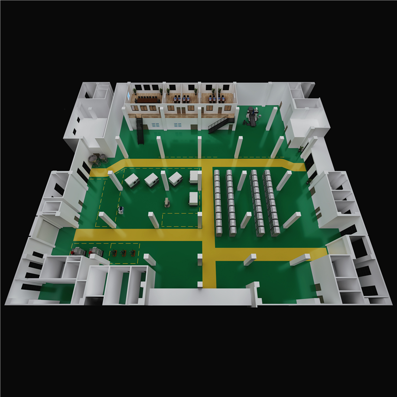 整個(gè)車間以白色為主色調(diào),營(yíng)造出干凈、整潔的氛圍。地面采用了光滑的白色瓷磚,便于清潔和維護(hù)。車間內(nèi)的門和門框大多是不銹鋼材質(zhì),顯得堅(jiān)固且易于清潔。 車