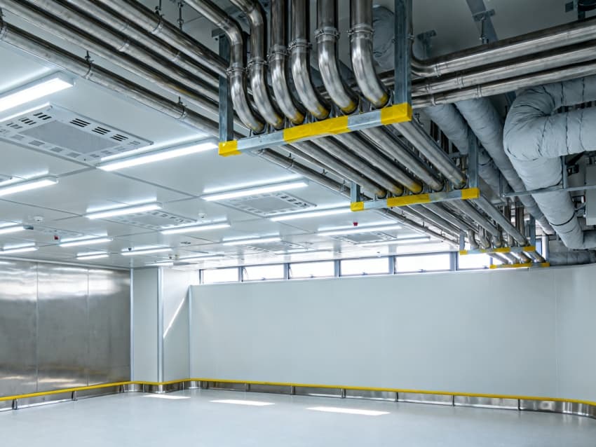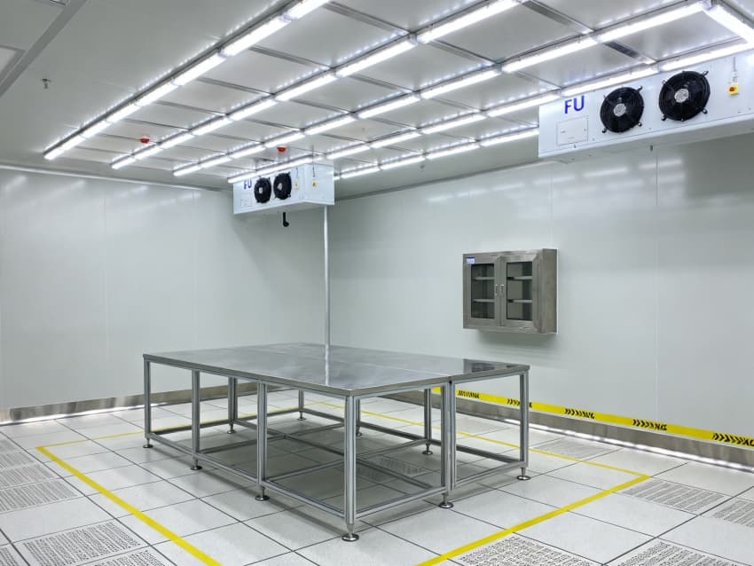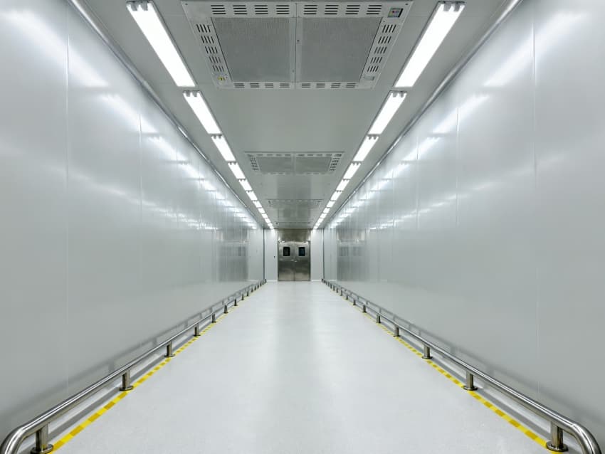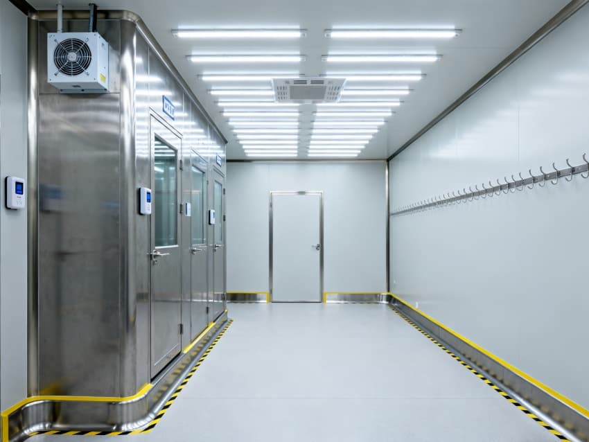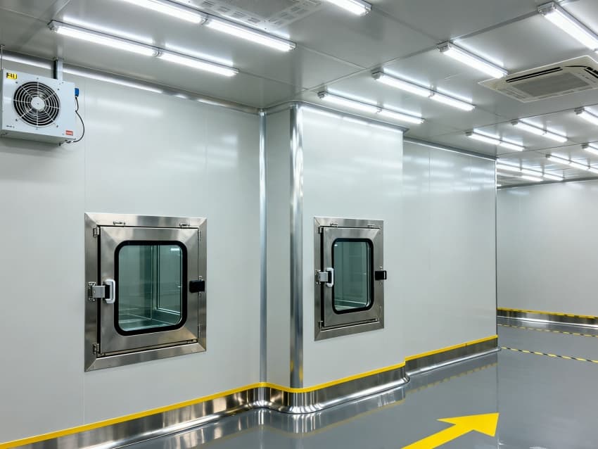 內(nèi)部按芯片工藝流程劃分光刻輔助區(qū)、晶圓預(yù)處理區(qū)、封裝過渡區(qū)等,各區(qū)域通過無塵傳遞艙銜接。車間嚴(yán)格執(zhí)行萬級潔凈標(biāo)準(zhǔn)(ISO8級),每立方米空氣中≥0.5μm微粒數(shù)≤352000個,采用初效-中效-高效-化學(xué)過濾四級凈化系統(tǒng),配合垂直層流送風(fēng),每小時空氣置換25-30次。墻面為防靜電不銹鋼板,地面是環(huán)氧樹脂自流平材質(zhì),溫度穩(wěn)定在23±1℃、濕度45±3%RH,同時配備靜電消除裝置,避免微粒與靜電影響芯片良率,完全契合芯片生產(chǎn)嚴(yán)苛要求。