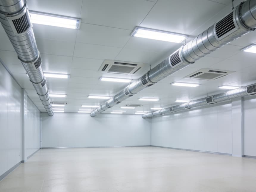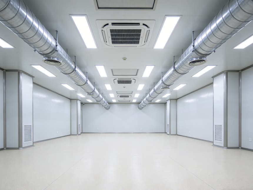 車間統(tǒng)一遵循半導(dǎo)體級(jí)潔凈標(biāo)準(zhǔn),地面為淺灰色防靜電環(huán)氧地坪,墻面采用白色無縫抗菌涂層,消除清潔死角。各車間功能精準(zhǔn)分區(qū):外延生長車間預(yù)留恒溫恒濕及氣體管路接口,適配高純度氣體輸送;光刻車間采用密閉避光設(shè)計(jì),預(yù)留高效過濾送回風(fēng)系統(tǒng);蝕刻車間強(qiáng)化耐腐蝕處理,配備排風(fēng)凈化預(yù)留接口;封裝測(cè)試車間規(guī)劃分區(qū)工位,預(yù)留精密檢測(cè)設(shè)備安裝基礎(chǔ)。