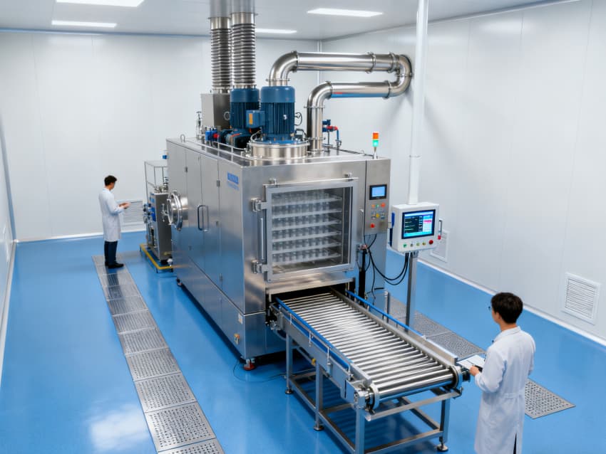 核心生產(chǎn)車間參數(shù)差異化設(shè)計(jì):原料處理車間為10萬(wàn)級(jí)潔凈區(qū),配備初、中、高效三級(jí)過(guò)濾系統(tǒng),高效過(guò)濾器效率≥99.99%,送風(fēng)量2000m³/h;試劑配制車間達(dá)萬(wàn)級(jí)潔凈標(biāo)準(zhǔn),采用頂送風(fēng)、側(cè)回風(fēng)模式,單向流風(fēng)速0.3-0.5m/s,溫濕度控制精度±2℃、±5%RH;無(wú)菌分裝車間為百級(jí)潔凈區(qū),配置層流罩,潔凈度≥0.5μm塵粒≤350個(gè)/m³,微生物≤1個(gè)/皿。