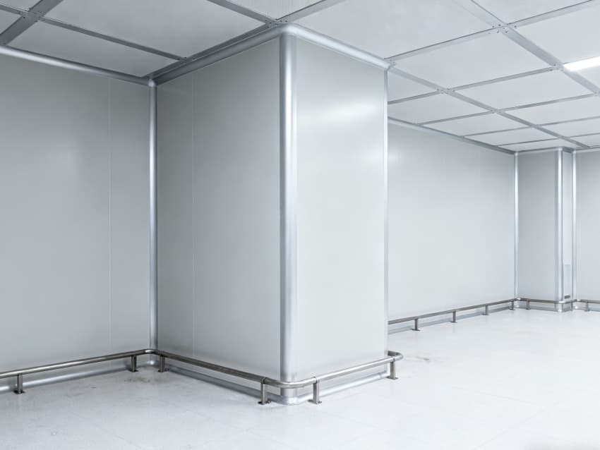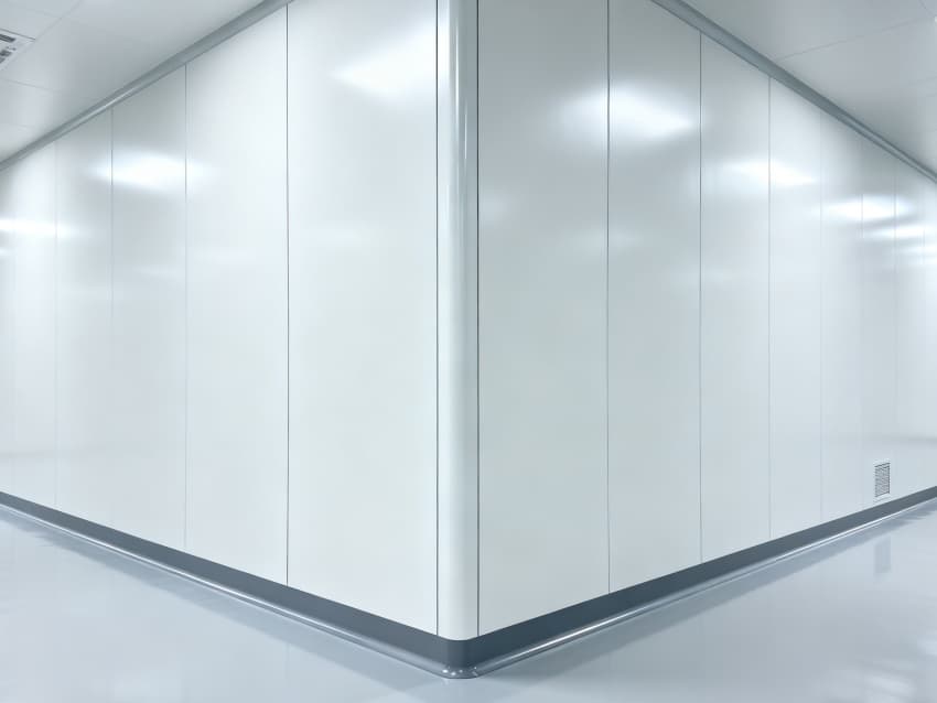 內(nèi)部按功能劃分為六大核心區(qū)域:潔凈生產(chǎn)區(qū)采用無設(shè)備空曠布局,預(yù)留8-12米柱距滿足光刻機(jī)、刻蝕機(jī)等大型設(shè)備安裝需求;管線集成區(qū)通過規(guī)整的頂部管線橋架系統(tǒng),實(shí)現(xiàn)水、電、氣、真空系統(tǒng)集中管控,減少管線交叉干擾;潔凈緩沖區(qū)設(shè)置于生產(chǎn)區(qū)入口,搭配墻面通風(fēng)口保障潔凈度過渡;設(shè)備預(yù)留區(qū)保留開闊橫向空間,支持后期工藝動線調(diào)整;結(jié)構(gòu)輔助區(qū)通過角落加固設(shè)計,滿足重型設(shè)備承重需求;墻面潔凈區(qū)采用光滑防污材質(zhì),降低粉塵附著率。整體空間兼顧半導(dǎo)體生產(chǎn)的潔凈標(biāo)準(zhǔn)與功能靈活性,適配合肥半導(dǎo)體產(chǎn)業(yè)發(fā)展需求。