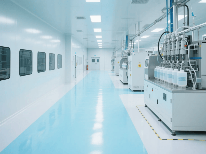 本方案嚴(yán)格遵循ISO14644-1Class7潔凈標(biāo)準(zhǔn),采用淺藍(lán)色彩鋼板與啞光白環(huán)氧樹脂構(gòu)建主體空間,打造兼具科技美感與功能性的生產(chǎn)環(huán)境。圍護(hù)系統(tǒng)選用50mm厚抗菌彩鋼板,表面經(jīng)特殊涂層處理,具有優(yōu)異的防塵抗靜電性能,所有接縫處采用圓弧過渡工藝處理,確保無(wú)死角清潔。