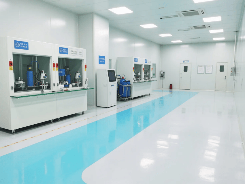 地面系統(tǒng)采用3mm厚環(huán)氧防靜電自流平工藝,表面電阻值穩(wěn)定控制在10^6-10^9Ω,摩擦系數(shù)0.6-0.8,滿足精密電子制造對(duì)地面的特殊要求。吊頂系統(tǒng)采用FFU+HEPA高效過濾組合,換氣次數(shù)≥25次/h,維持穩(wěn)定的層流狀態(tài)。功能分區(qū)通過淺藍(lán)色環(huán)氧劃線清晰標(biāo)識(shí),設(shè)備區(qū)采用啞光白不銹鋼包邊處理。