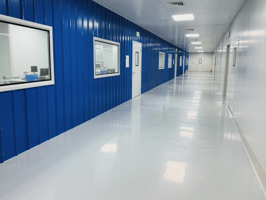 淺灰導(dǎo)電環(huán)氧地坪系統(tǒng)電阻值穩(wěn)定在10^6-10^9Ω,添加石英砂耐磨骨料,使用壽命達10年以上;