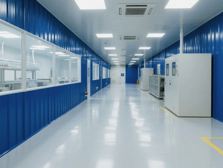 圍護系統(tǒng)采用50mm厚深藍抗菌彩鋼板,表面經(jīng)納米涂層處理,接縫采用專利"隱形鎖邊"工藝,確保氣密性達標;