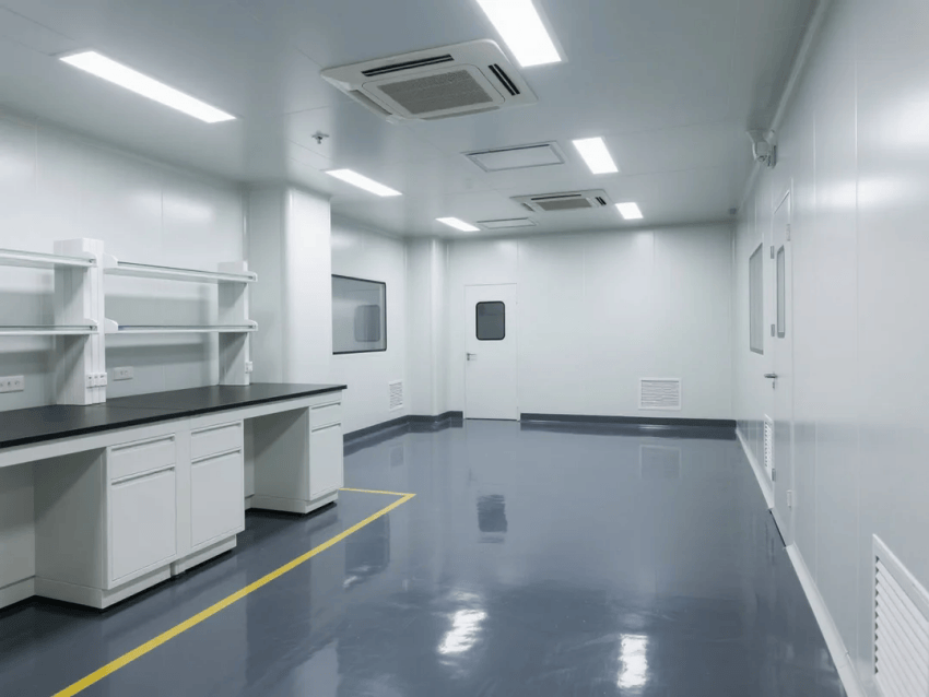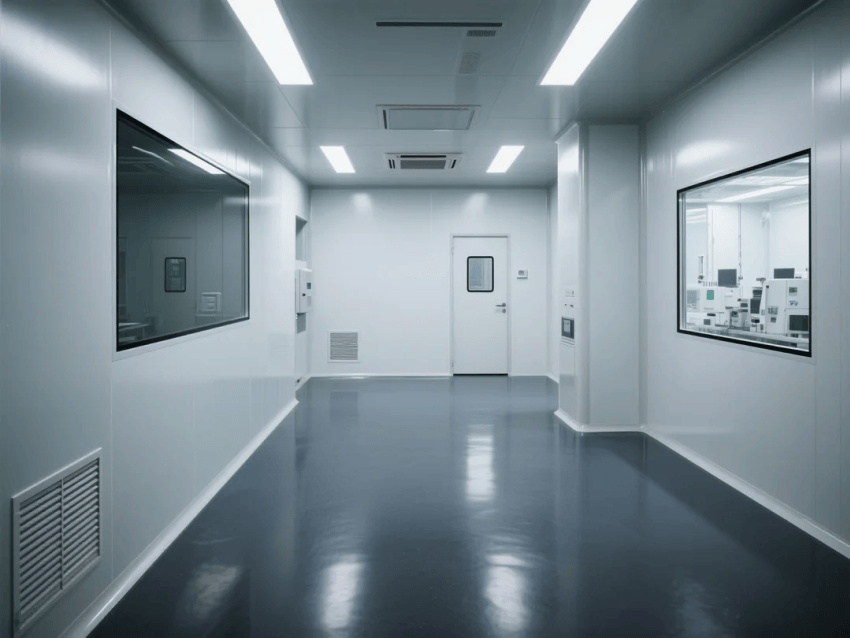 本工程嚴(yán)格遵循ISO14644-1Class7標(biāo)準(zhǔn),采用"科技工業(yè)風(fēng)"設(shè)計(jì)語言,打造高精度氣密檢測環(huán)境。實(shí)驗(yàn)室以白色彩鋼板墻體與深灰環(huán)氧防靜電地坪形成鮮明視覺對比,營造兼具科技感與功能性的檢測空間。