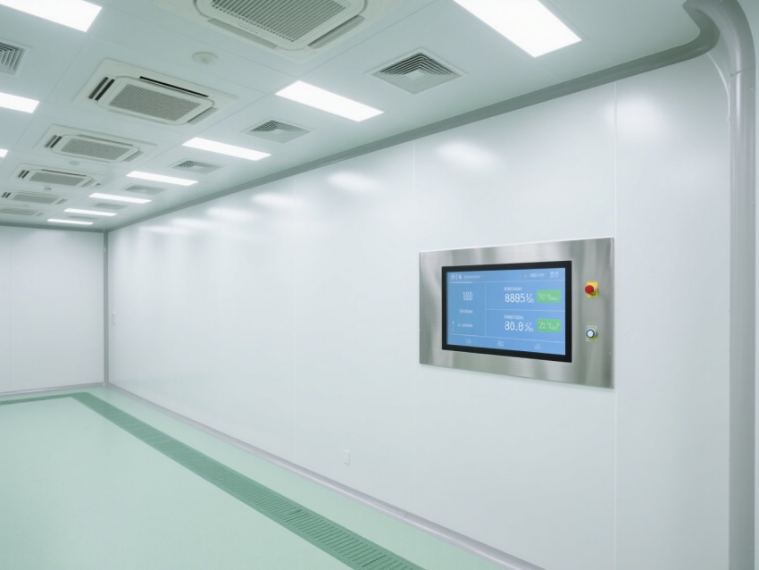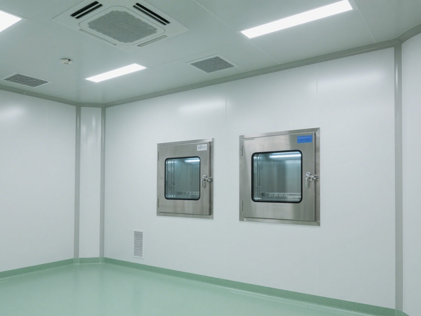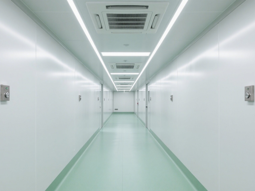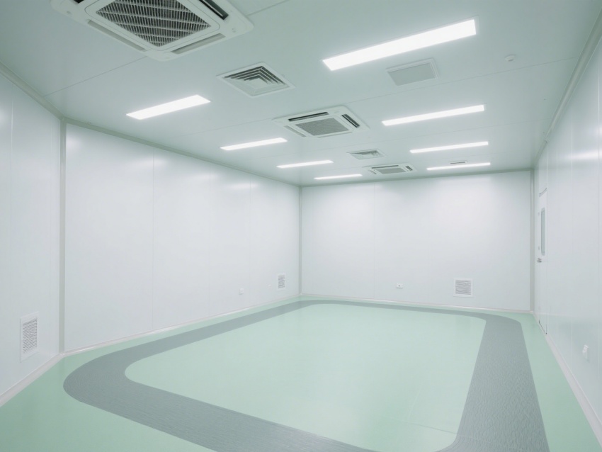 實(shí)驗(yàn)室內(nèi)部采用了白色和淺綠色為主的配色方案,營造出一種干凈、整潔的視覺感受。墻面、地面和天花板均采用無縫設(shè)計(jì),便于清潔和消毒,防止微生物和灰塵的積聚。照明系統(tǒng)明亮且均勻,提供了良好的工作環(huán)境。