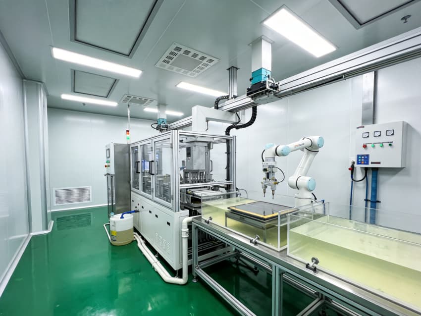顯示器件制造廠房內(nèi)部采用綠色地面與白色墻壁的簡約潔凈風(fēng)格,精準(zhǔn)匹配OLED、LCD等顯示器件生產(chǎn)對微塵、靜電、溫濕度的嚴(yán)苛要求。綠色地面選用防靜電高耐磨環(huán)氧自流平材質(zhì),經(jīng)激光找平、防靜電涂層等多道精密工序處理,表面平整無縫,防靜電性能穩(wěn)定,可有效規(guī)避靜電對顯示面板的損傷,同時具備強耐磨、易清潔特性,適配高頻次潔凈維護(hù)作業(yè)。