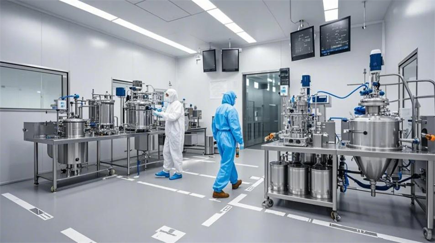 ADC醫(yī)藥研發(fā)生產(chǎn)車(chē)間內(nèi)部采用灰色地面與白色墻壁的簡(jiǎn)約統(tǒng)一風(fēng)格,嚴(yán)格遵循GMP高級(jí)別潔凈規(guī)范,精準(zhǔn)匹配抗體偶聯(lián)藥物研發(fā)生產(chǎn)的無(wú)菌、低污染嚴(yán)苛需求。灰色地面選用醫(yī)
