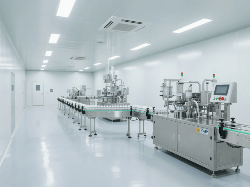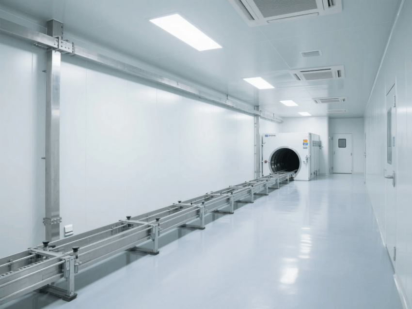 本工程嚴格遵循GMP及ISO14644-1Class8標(biāo)準(zhǔn),專為無菌制劑灌裝生產(chǎn)打造高標(biāo)準(zhǔn)潔凈環(huán)境。整體采用醫(yī)療級白色抗菌彩鋼板與淺灰環(huán)氧自流平地坪的潔凈配色方案,營造安全、專業(yè)的無菌生產(chǎn)氛圍。