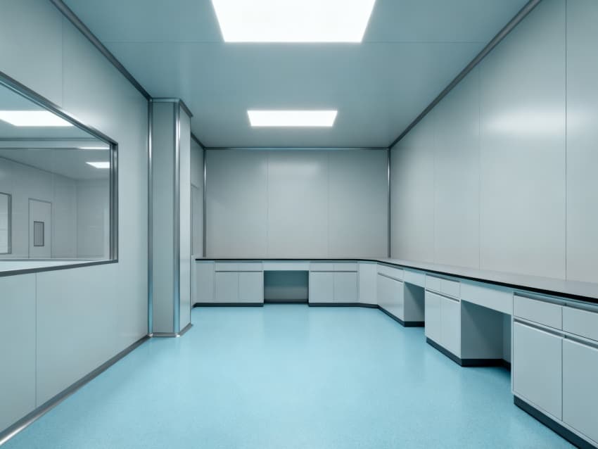 內(nèi)部按研發(fā)流程劃分六大功能區(qū):核心實(shí)驗(yàn)區(qū)(淺藍(lán)防腐蝕地面、淺灰抗菌墻面)預(yù)留8米柱距,滿(mǎn)足液相色譜儀、細(xì)胞培養(yǎng)箱等設(shè)備布局;樣品處理區(qū)設(shè)雙層通風(fēng)櫥,避免試劑交叉污染;試劑儲(chǔ)存區(qū)配防爆柜體,適配危化品管控;無(wú)菌操作預(yù)留區(qū)保留萬(wàn)級(jí)潔凈基礎(chǔ),可快速升級(jí)凈化等級(jí);數(shù)據(jù)分析區(qū)銜接實(shí)驗(yàn)區(qū),預(yù)留辦公與數(shù)據(jù)終端位置;人員緩沖區(qū)設(shè)更衣、消毒通道,防止外部污染帶入。整體空曠布局兼顧靈活研發(fā)與合規(guī)要求,為安徽藥企提供從基礎(chǔ)研究到中試的一體化空間。