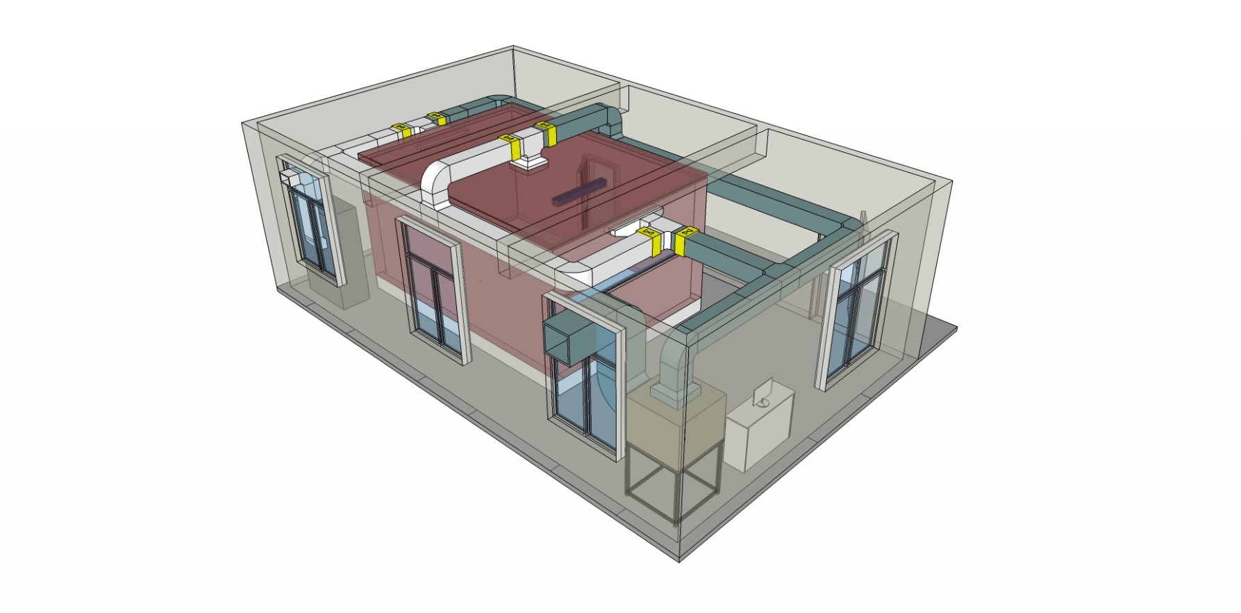 實(shí)驗(yàn)內(nèi)室能夠?qū)崿F(xiàn)溫度、濕度獨(dú)立控制。整套系統(tǒng)共設(shè)置3個(gè)風(fēng)口,可以自由轉(zhuǎn)換為送風(fēng)口或回風(fēng)口,采用球形電磁閥門控制方向轉(zhuǎn)換。風(fēng)口在關(guān)閉時(shí)需保證有良好的密封性能。同時(shí),設(shè)置個(gè)性化送回風(fēng)裝置。各風(fēng)口作用轉(zhuǎn)換,可以實(shí)現(xiàn)不同的氣流組織形式。換氣次數(shù)使用變頻進(jìn)行改變。設(shè)有觀察窗兩個(gè),分別位于實(shí)驗(yàn)小室的頂棚中部和側(cè)面中部(有門一側(cè))。