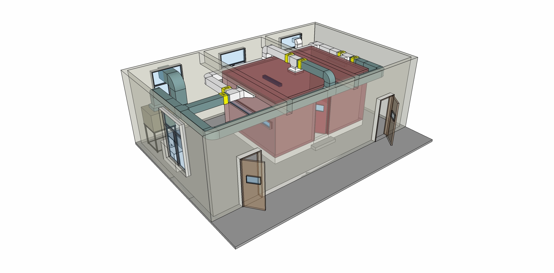 實(shí)驗(yàn)內(nèi)室尺寸: 5m×3.5m×2.5m(長×寬×高)。