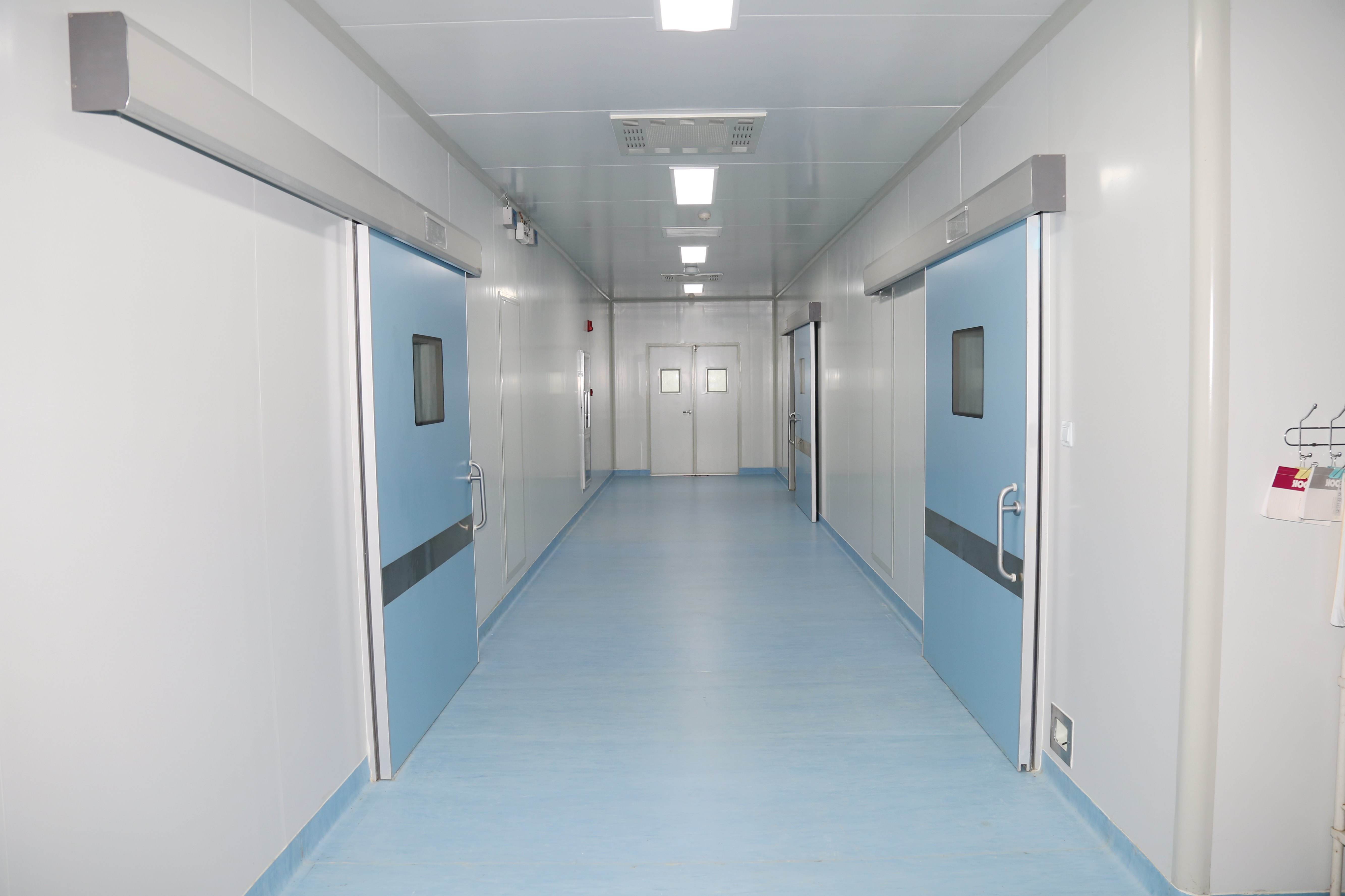 醫(yī)療整形美容院層流手術(shù)室三間,其中一間千級手術(shù)室凈化系統(tǒng),兩間萬級潔凈手術(shù)室,層流手術(shù)室建筑施工面積260㎡(含相應(yīng)輔助用房功能間,輔助用房為十萬級凈化),板材采用藍(lán)色玻鎂潔凈板,地面搭配進(jìn)口PVC,具有抗碘伏、耐磨、防滑、易清洗功能;凈化機(jī)組采用領(lǐng)先技術(shù)的醫(yī)凈恒溫恒濕空調(diào),搭配PLC控制系統(tǒng)、高端觸摸屏控制器,具有自動(dòng)加濕除濕、自動(dòng)調(diào)節(jié)溫度、故障報(bào)警功能;已取得第三方檢測公司的檢測報(bào)告;手術(shù)室潔凈走廊,搭配藍(lán)色潔凈板與進(jìn)口品質(zhì)pvc地板;墻體安裝不銹鋼防撞帶,有效保障了推手術(shù)病人的過程中發(fā)生的墻體擦掛;醫(yī)用自動(dòng)門定制同色,配備光感應(yīng)防夾功能、內(nèi)外腳踏感應(yīng)功能,電機(jī)采用進(jìn)口機(jī)芯,啟動(dòng)聲音低。